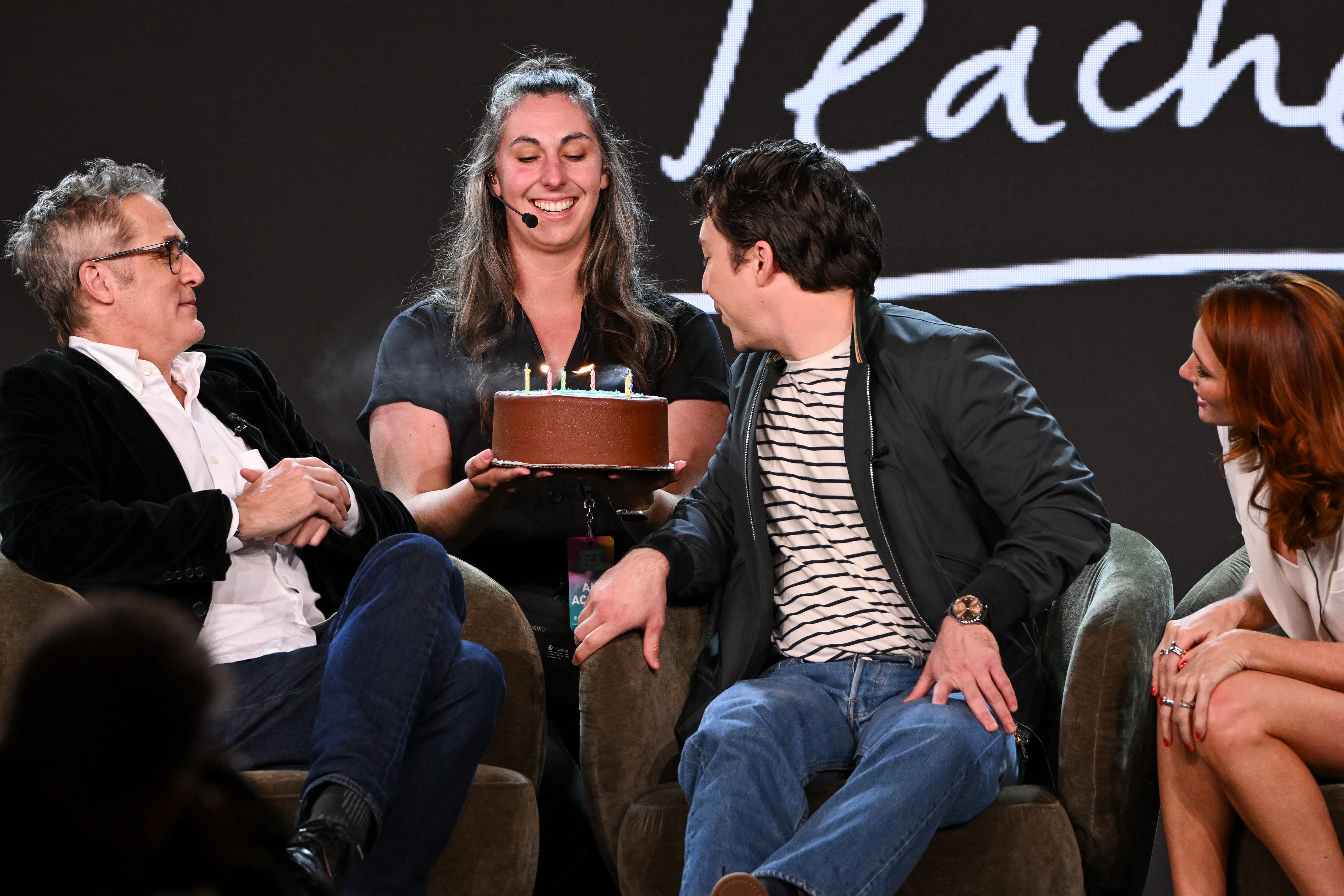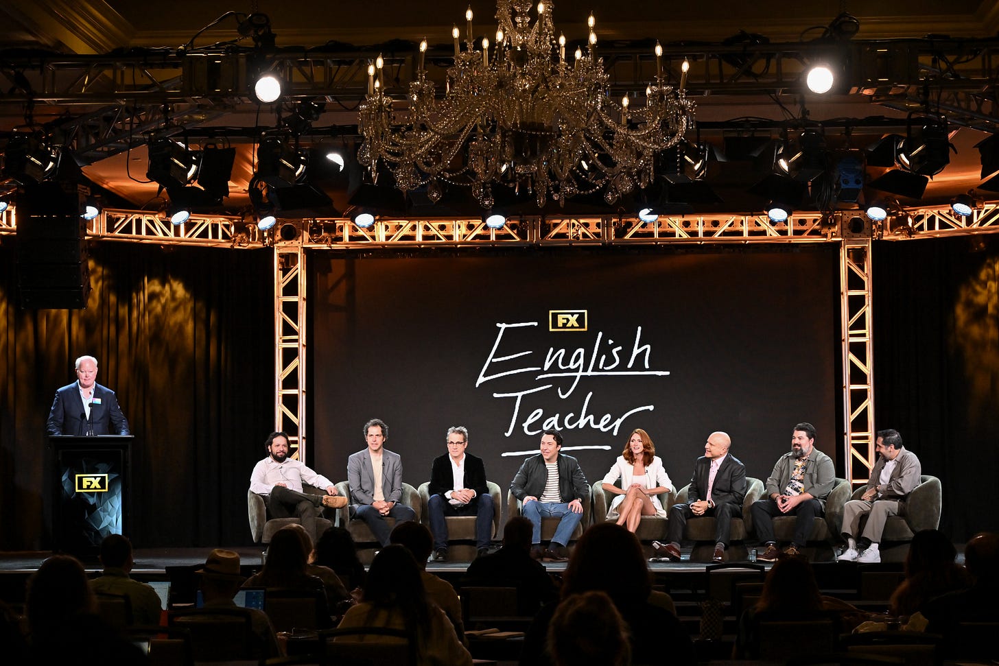 It was a lively way to start off the event—while critics in the room were disappointed the day wasn’t starting with an executive session with John Landgraf (who was unavailable not unwilling, per FX), the English Teacher panel had some good laughs, some good vibes, and a wide range of questions covering Alvarez’s personal connection to teaching, the cast’s ability to improvise, the ‘80s needle drops, etc. It even ended on the upbeat note of Alvarez’s birthday, with FX press czar John Solberg ushering out a birthday cake for the ritual blowing out of candles.