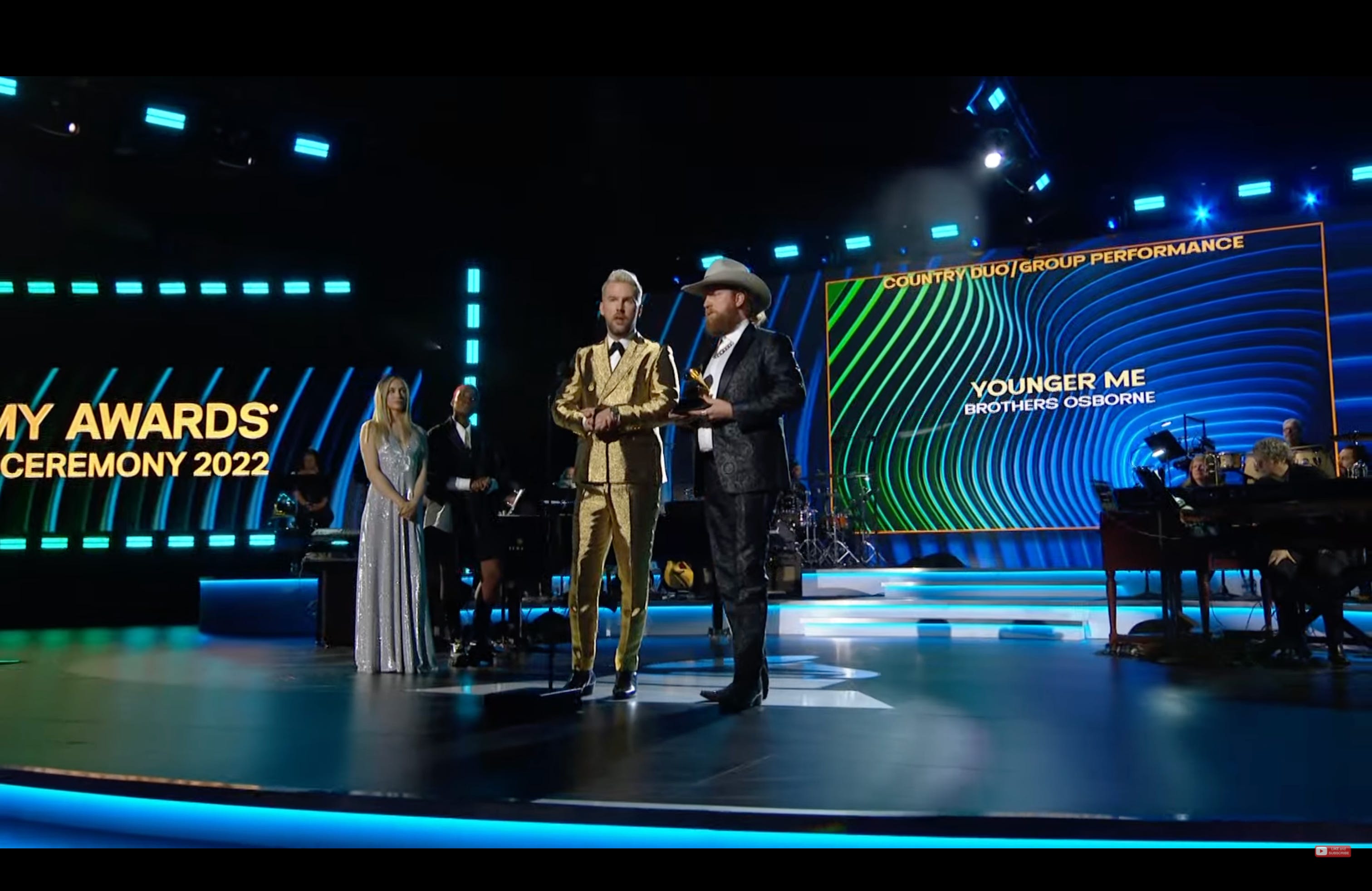 Case in point: just after I sent my reply to Joe’s tweet, the Brothers Osborne earned their first Grammy for “Younger Me,” which won Country Duo/Group Performance. It’s a song inspired by lead singer and younger brother T.J. Osborne, who came out as gay early in 2021, and as he accepted the award he spoke about what it meant to him to be winning that award for a song about something he thought meant he could never make it as a musician, and after taking the risk of going public with this part of himself.1 As he spoke of the man he loves being in the audience to see it, the Grammy Premiere broadcast rose to the power of the moment, even managing to do a “where are the queer folk?!” scan of the crowd and get a camera on Brandi Carlile’s standing ovation.
