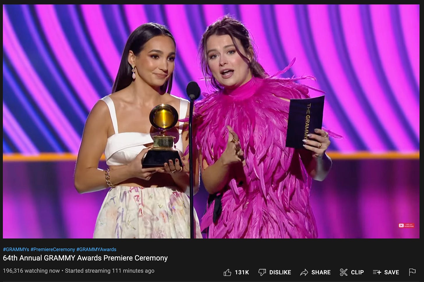 The Recording Academy putting this—along with most speeches from the pre-show—on YouTube means this moment will live beyond last night, but it will still be seen by far fewer people than it it had happened on CBS. The Recording Academy’s official Twitter account admittedly live-tweeted every winner, always with a link to livestream the Premiere broadcast, but how many of their 3.6 million followers bothered tuning in yesterday remains unclear: the Grammy.com feed they’re linking to has no viewing data, while the 192k who were watching on YouTube as I started writing this at 5:23pm eastern, uh, may not necessarily be paying a lot of attention based on the chat.2