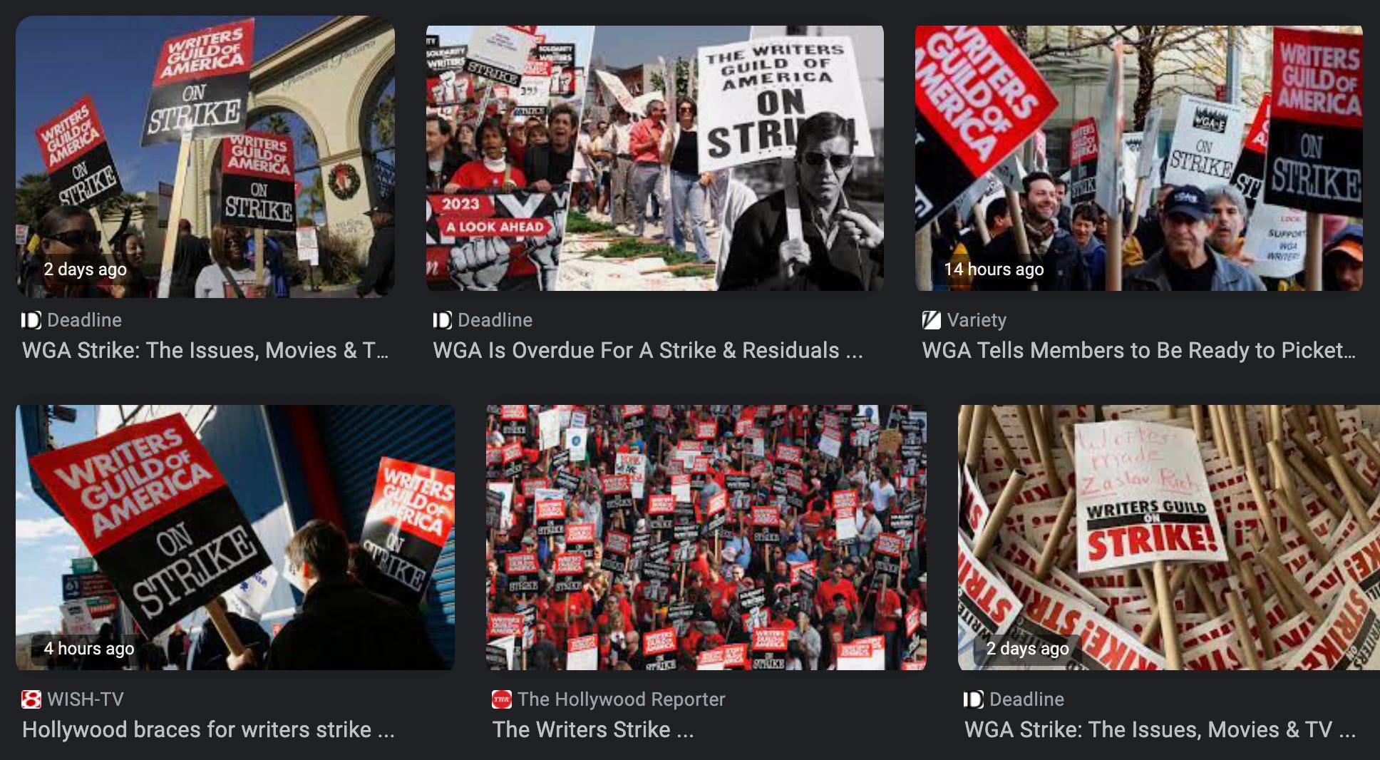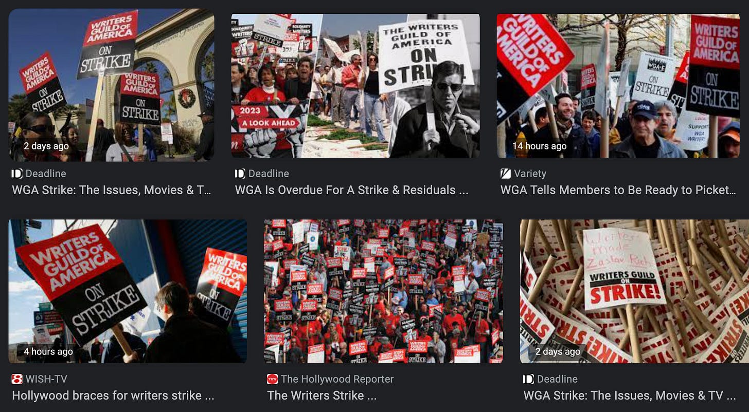 Let’s begin this newsletter with a very simple statement: I support the Writer’s Guild of America in their fight for fair compensation and a sustainable living in an era where major studios and distributors have actively conspired to build their businesses on their work while enacting policies that disenfranchise and limit writers at every turn. If they go on strike tonight, I will be doing whatever is in my power to support them.